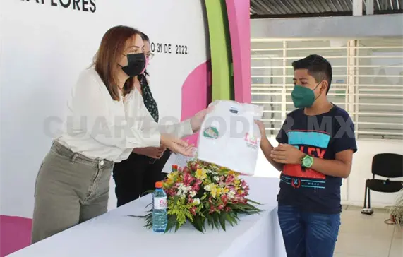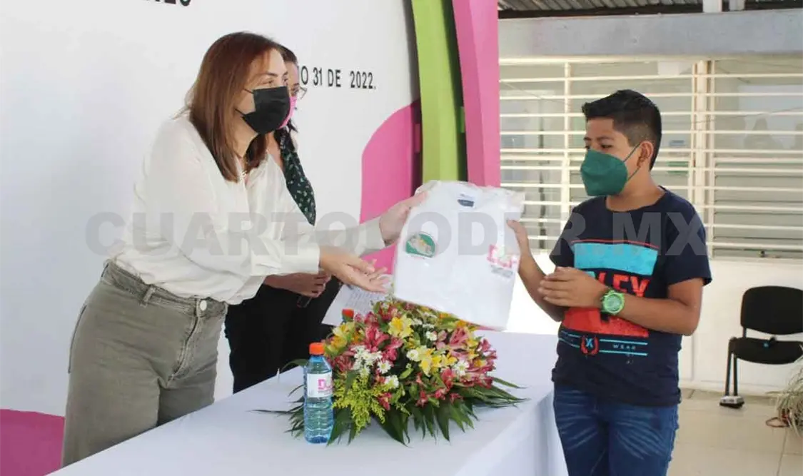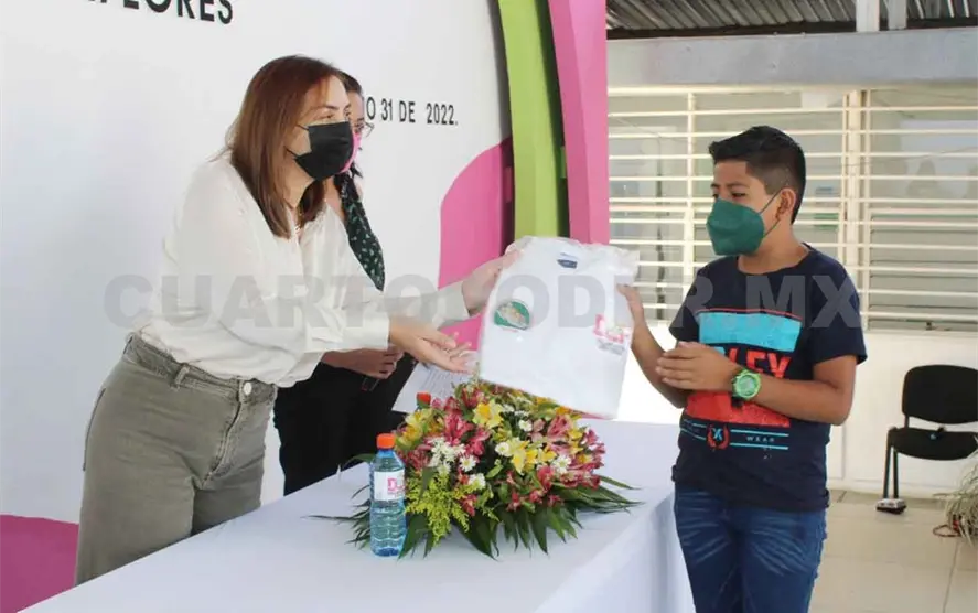 Margarita Sarmiento Tovilla, presidenta del DIF Villaflores, encabezó la entrega de uniformes a los integrantes de la Red de Impulsores de la Transformación de los Derechos de las Niñas, Niños y Adolescentes.