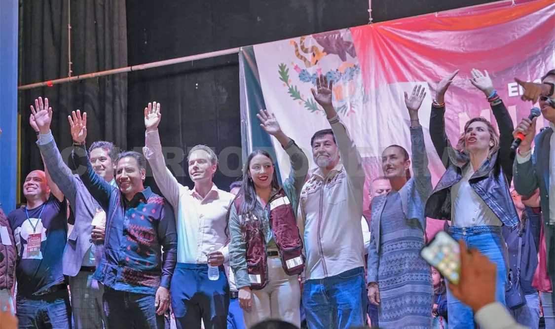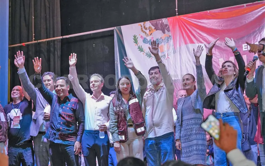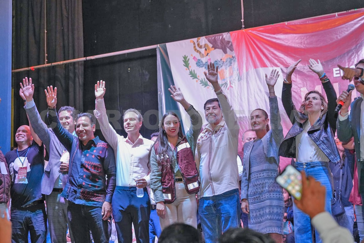 En el teatro Million Dollar, al que se dieron cita miles de migrantes simpatizantes de Morena, Eduardo Ramírez saludó al dirigente nacional de Morena, Mario Delgado Carrillo y al senador con licencia, Manuel Velasco Coello, con quienes coincidieron en que la prioridad es respaldar el proyecto de continuidad de la Cuarta Transformación del pueblo mexicano.