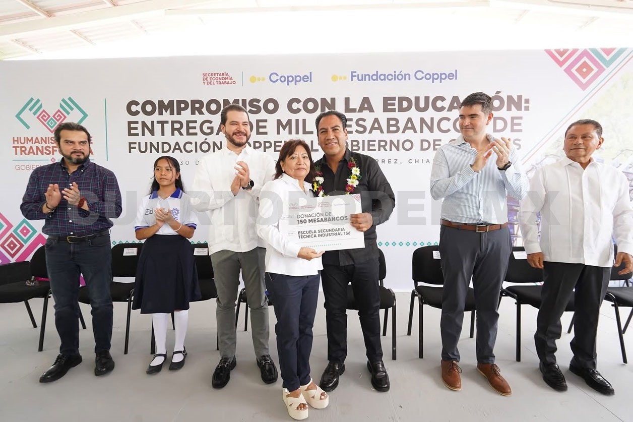 Con el propósito de fortalecer la infraestructura escolar y garantizar a niñas, niños y adolescentes (NNA) espacios dignos para su aprendizaje, el Gobierno del Estado de Chiapas, en coordinación con Fundación Coppel, entregó mil mesabancos a 10 escuelas públicas de nivel básico en Tuxtla Gutiérrez.