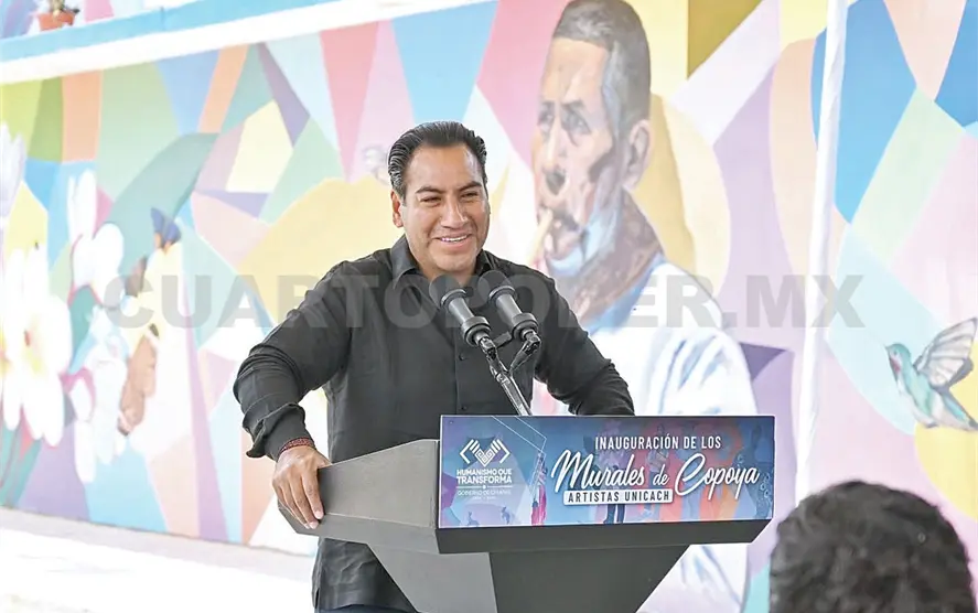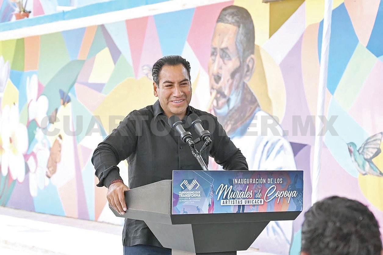 En Copoya, el mandatario puso en marcha el proyecto Murales de Copoya, una intervención artística realizada por más de 60 creadoras y creadores de la Universidad Autónoma de Ciencias y Artes de Chiapas (Unicach), quienes plasmaron 16 murales en viviendas de la zona. Estas obras no solo mejoran la imagen urbana, sino que convierten las calles en un museo al aire libre que enaltece la identidad y honra las raíces de la cultura zoque.
