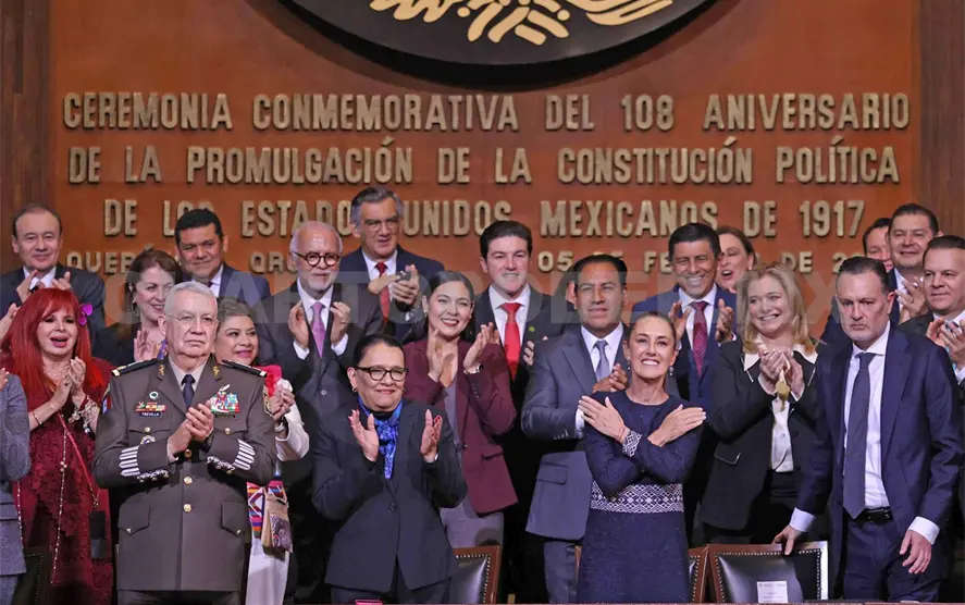 El gobernador Eduardo Ramírez Aguilar acompañó a la presidenta de México, Claudia Sheinbaum Pardo, en la ceremonia conmemorativa del 108 aniversario de la Promulgación de la Constitución Mexicana, realizada en la ciudad de Querétaro.