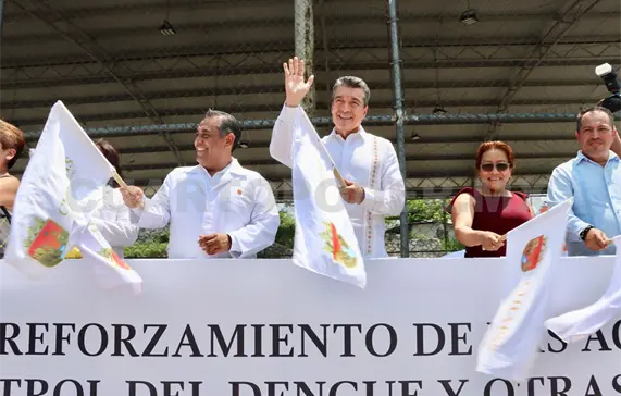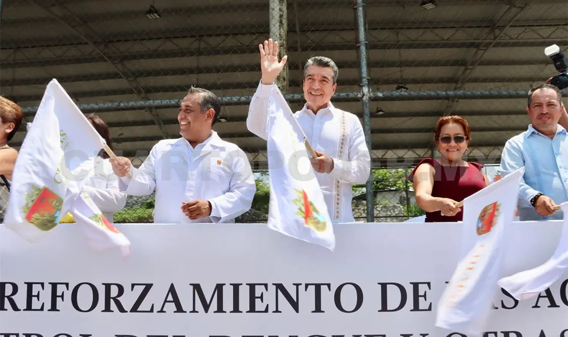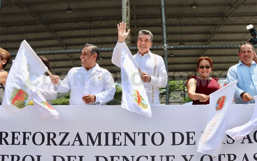 En Reforma, el gobernador Rutilio Escandón Cadenas dio el banderazo de inicio al operativo contra el dengue y otras arbovirosis, con el objetivo de ampliar y fortalecer integralmente las acciones de control, mitigación y combate de este tipo de enfermedades en los municipios de la región Norte.