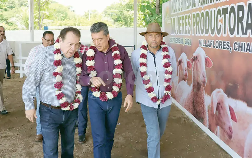 En Villaflores, el gobernador Rutilio Escandón Cadenas entregó apoyos a mujeres y hombres productores de ganado ovino y bovino, ante quienes refrendó su respaldo a este sector y subrayó que, gracias al trabajo de unidad entre los tres órdenes de gobierno, se avanza de manera importante en la productividad del campo, la soberanía alimentaria, el fortalecimiento del hato ganadero y en el combate a las invasiones y al abigeato.