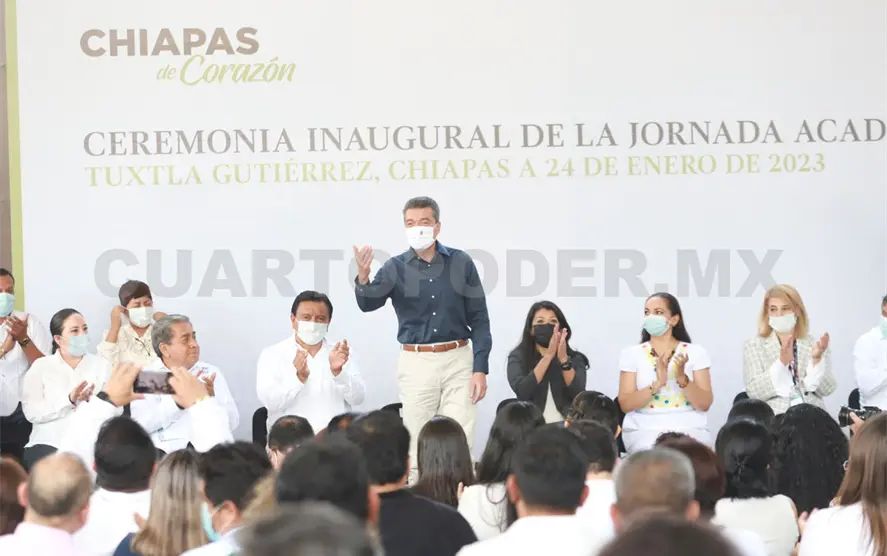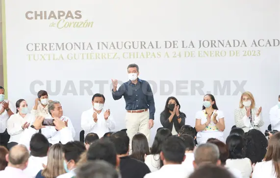 En la inauguración de la Jornada Académica 2023 del Colegio de Bachilleres de Chiapas (Cobach), el gobernador Rutilio Escandón Cadenas dijo que la capacitación de las maestras y maestros es fundamental para que estén actualizados, refuercen sus habilidades y brinden a sus estudiantes una relación basada en el respeto, poniéndolos en el centro del proceso de enseñanza-aprendizaje.