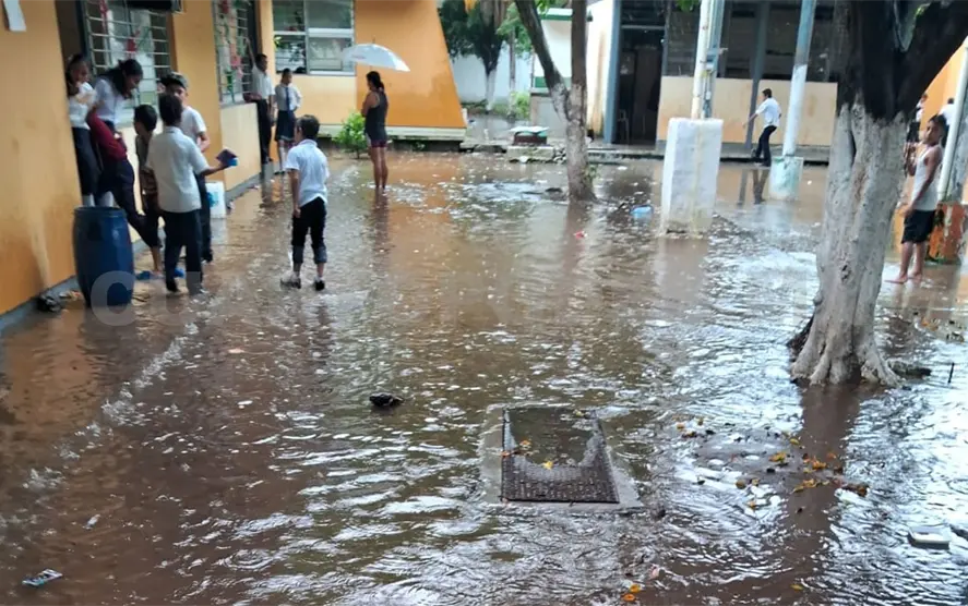 Juan José González Pérez, director de la Ignacio José de Allende, dio a conocer que tres salones resultaron anegados tras la lluvias que se han prolongado desde el pasado sábado. Dijo que en el patio de la institución y en las tres aulas, el agua superó los 60 centímetros, por lo que los pupitres permanecen inundados, ya que las fuertes precipitaciones no cesan.