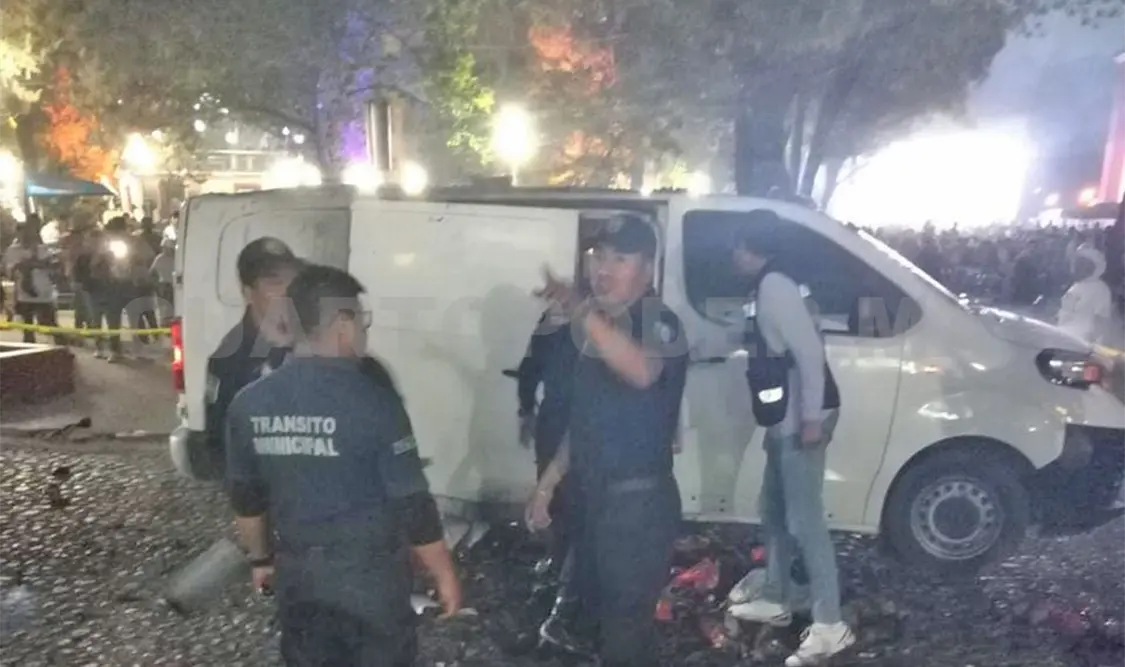 Al rededor de las siete de la noche, una unidad blanca con placas CX-0838-A se encontraba estacionada frente al Museo San Cristóbal (Musac), y aun costado se lanzaban fuegos artificiales. Según videos captados por civiles, se registró una explosión que provocó que el resto de la pirotecnia ardiera sin control.