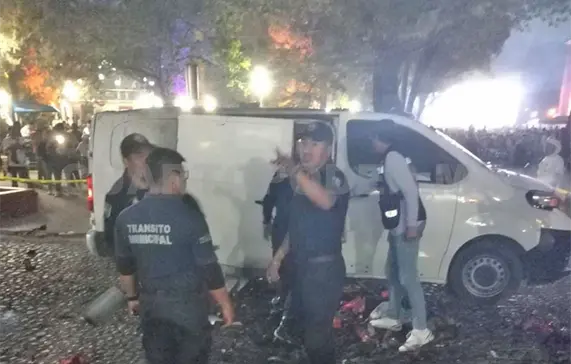 Los cuetes salieron disparados hacia todos lados, afectando primero a la camioneta y generando crisis nerviosa entre los asistentes al evento político.