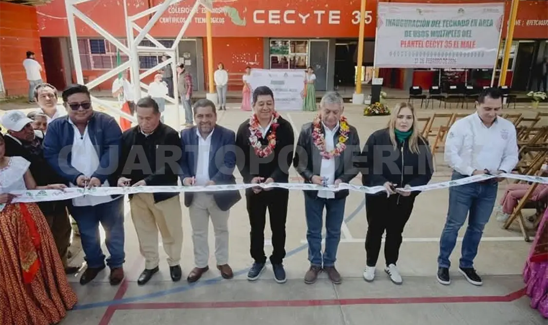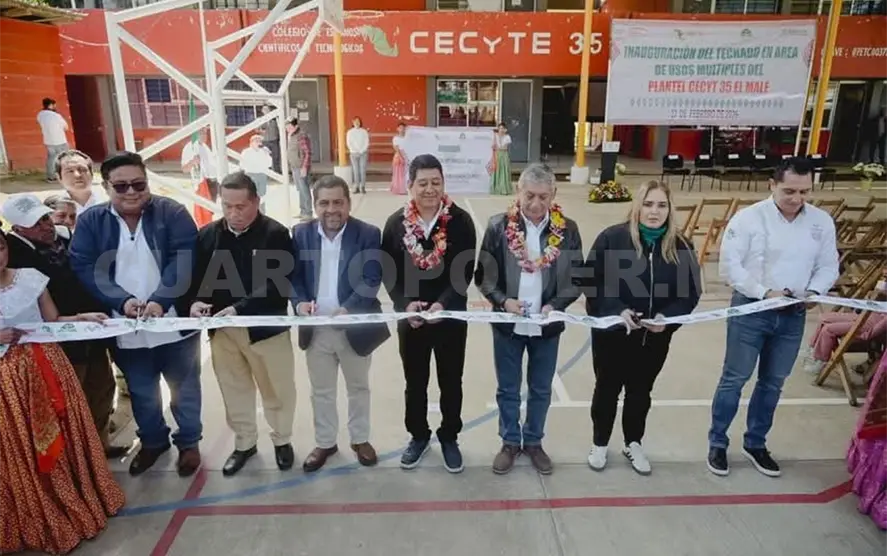 El director general del Colegio de Estudios Científicos y Tecnológicos del Estado de Chiapas (Cecytech), Luis Guadalupe Morales Ángeles, y el presidente municipal de El Porvenir, Josué Maximiliano González Pérez, inauguraron el domo del Plantel 35 El Malé con el objetivo de fortalecer la infraestructura educativa y garantizar espacios dignos que favorezcan el desarrollo integral de las y los estudiantes.