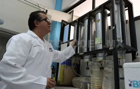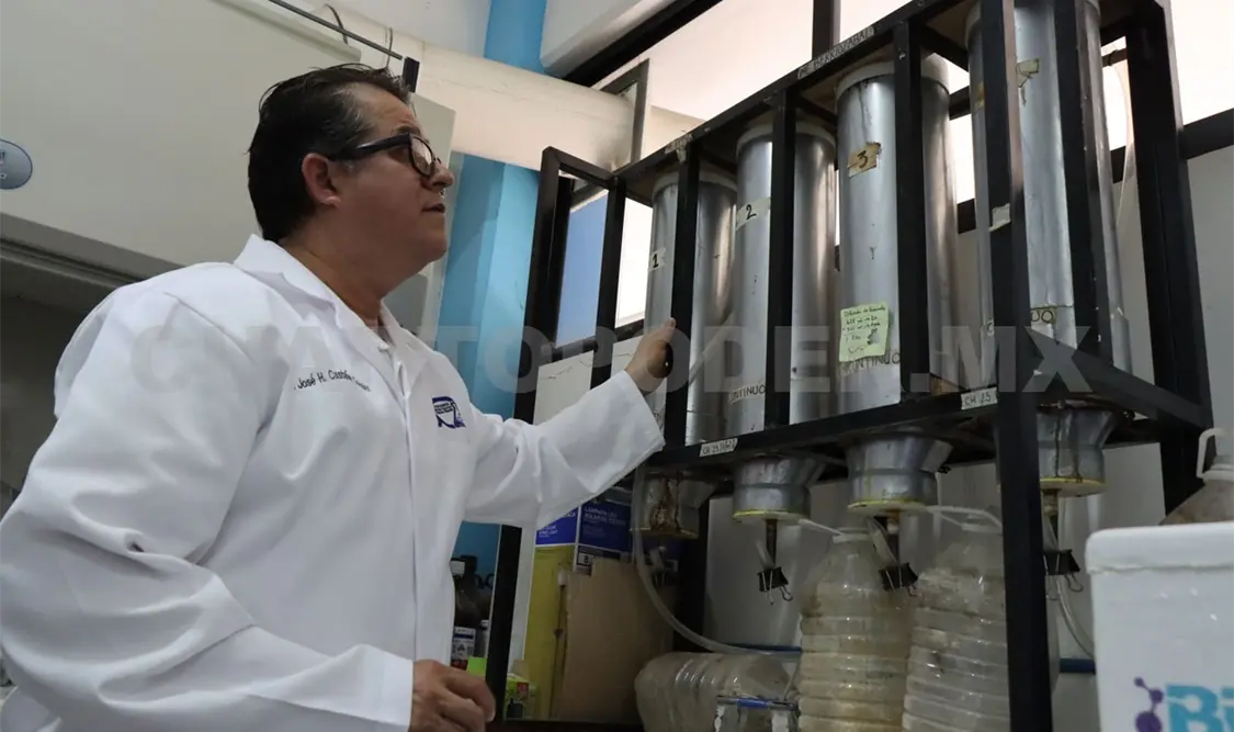 En laboratorio trabajan con reactores, colocando lixiviados de basureros que ya fueron clausurados. Explica que al cerrarlos se tienen que compactar, quedando una zona sin oxígeno habitada por microorganismos que pueden sobrevivir en estas condiciones.