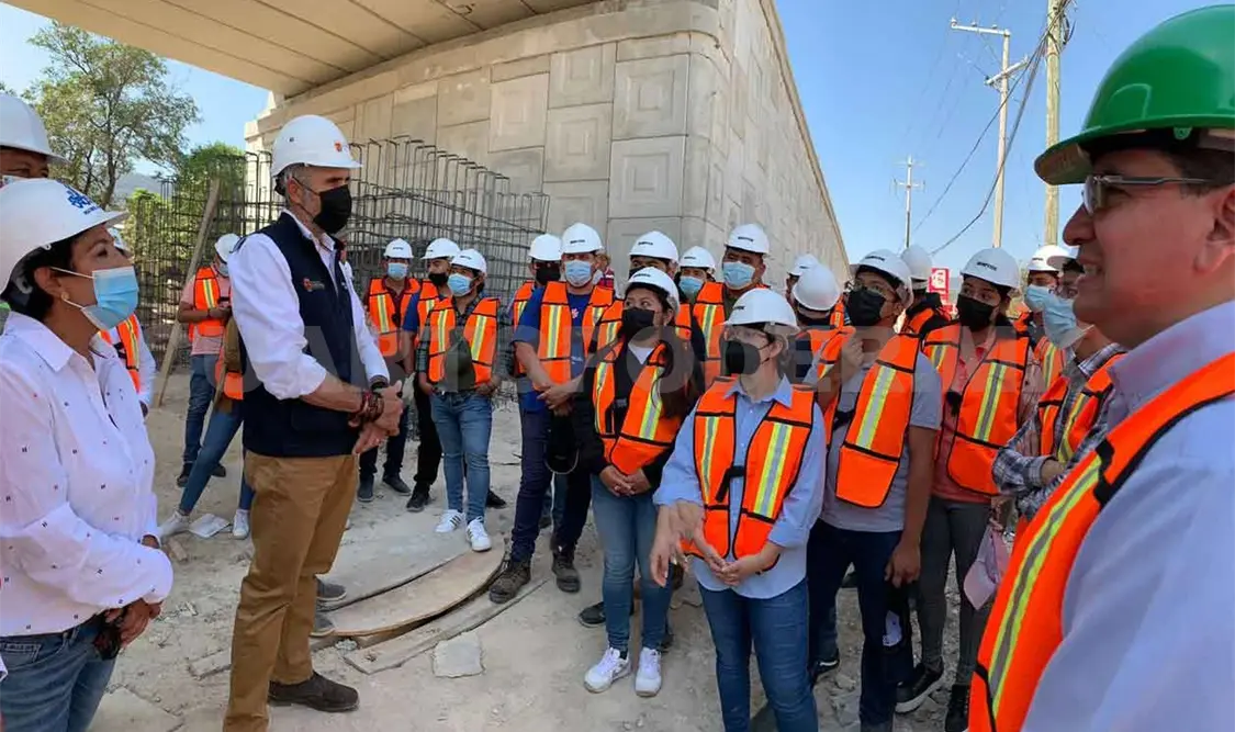 La Secretaría de Obras Públicas del estado de Chiapas invitó a estudiantes de la carrera en Ingeniería Eléctrica del TecNM, campus Tuxtla Gutiérrez, a una visita guiada a la obra pública del paso desnivel en el libramiento Sur Oriente de la capital chiapaneca.
