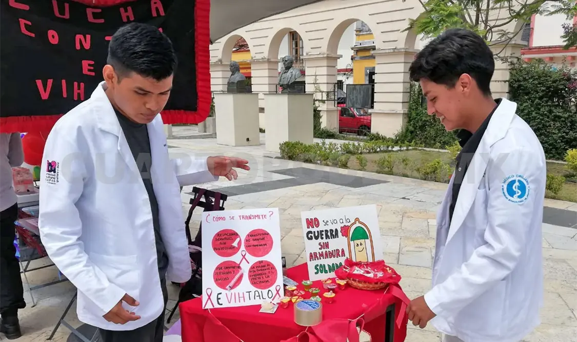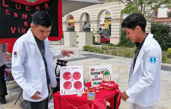 Estudiantes de medicina de la Universidad Intercultural de Chiapas (Unich) realizaron este martes en los espacios del parque de Los Héroes de San Cristóbal de Las Casas, la Feria de la Salud 2023.