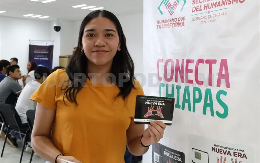 Estudiantes del Instituto Tecnológico de Tuxtla Gutiérrez recibieron chips de conectividad como parte del programa Conecta Chiapas, que busca ofrecer servicio gratuito de Internet a estudiantes mediante un plan mensual con cinco mil 120 megas para navegar, además de redes sociales y llamadas ilimitadas.