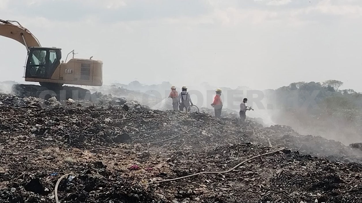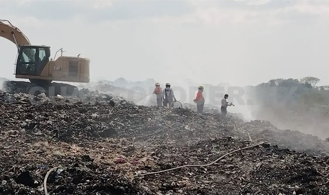 La Secretaría de Protección Civil de Chiapas informó de la utilización de maquinaria pesada para remover residuos con hasta cuatro metros de profundidad, esto como parte de los trabajos de contención que se están haciendo en el incendio registrado en el basurero hace varios días.
