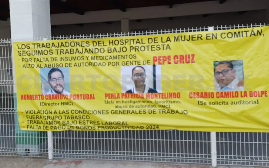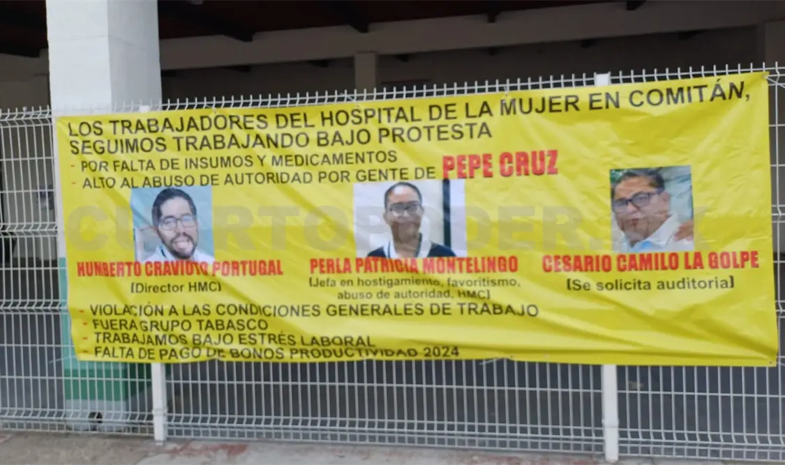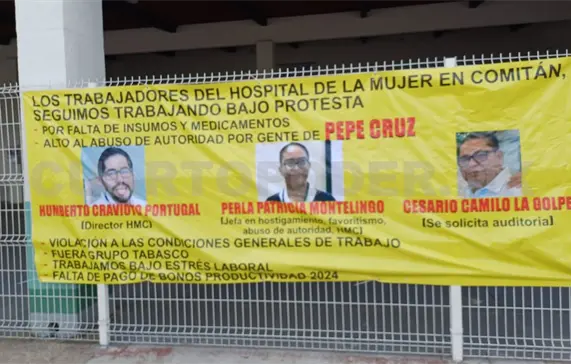 Personal de Salud se manifestó en la mañana de ayer en las afueras del Hospital Materno Infantil de Comitán para exigir una auditoría y la destitución de tres funcionarios, por posibles actos de corrupción en esta institución médica durante la administración del sexenio anterior.