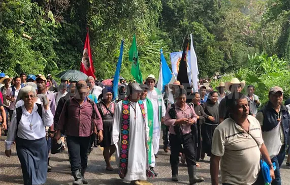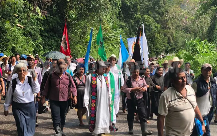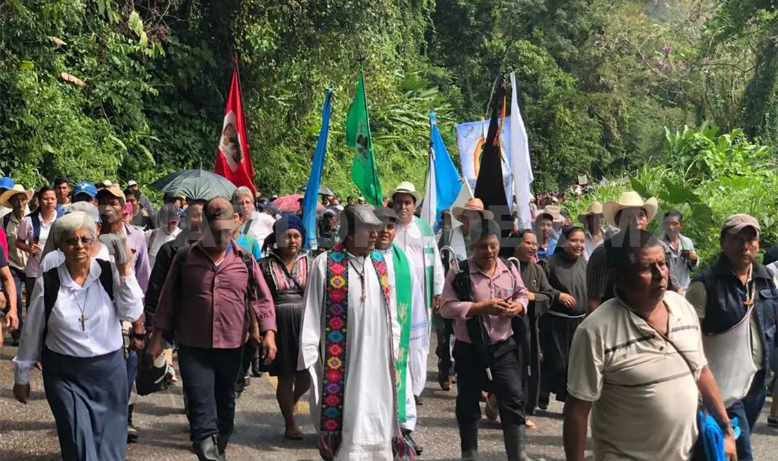 Alrededor de mil personas de diferentes municipios realizaron este lunes una marcha peregrinación en el municipio de Solosuchiapa, ubicado en el norte de la entidad, para exigir el cierre de la mina Santa Fe, situada en la comunidad de Beneficio, de la que se extraen oro, cobre, plata y zinc, y que las tierras “sean regresadas a sus legítimos dueños”, informó el sacerdote Marcelo Pérez Pérez, responsable de la pastoral social de las tres diócesis de Chiapas.