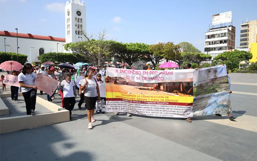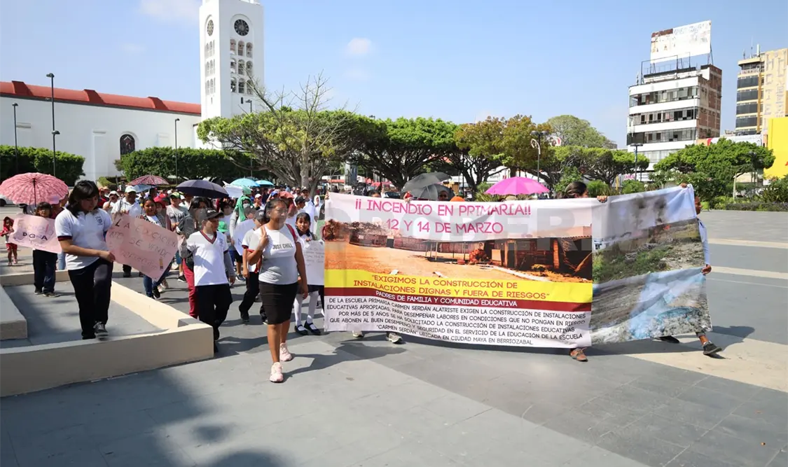 Hartos de la precariedad y de que las autoridades, por siete años, “les den largas”, alumnos, docentes y padres de familia de la Escuela Primaria —que recientemente sufrió un incendio— “Carmen Serdán Alatriste” de Ciudad Maya en Berriozábal, realizaron una marcha exigiendo se construya la escuela con materiales de calidad y acorde al derecho constitucional de garantizar una educación digna.