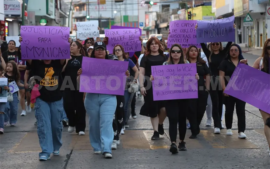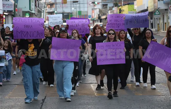 Familiares, amistades, clientas, alumnas e integrantes de asociaciones civiles de mujeres; vestidas de color negro como símbolo de luto, marcharon para exigir justicia por el feminicidio de Mónica Delgado, maquilladora profesional, madre y esposa; quien fue asesinada por su pareja y padre de su hija, Miguel Ángel “N”.