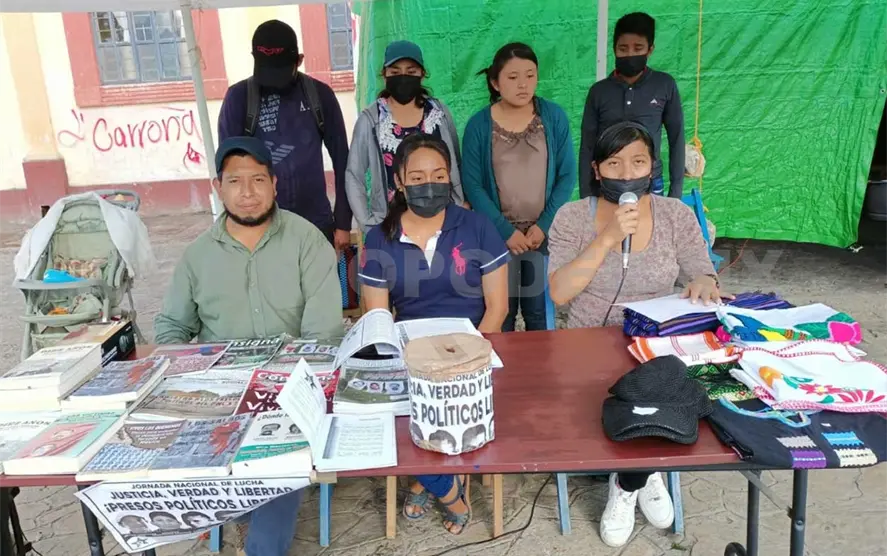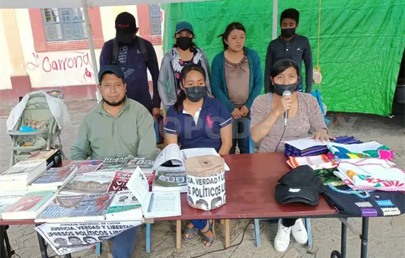 En conferencia de prensa realizada la tarde de este lunes en la Plaza Catedral de San Cristóbal de Las Casas, los manifestantes exigieron justicia por la muerte de Efraín Espinoza Pérez, asesinado el 4 de mayo de este año por militantes de La Alianza San Bartolomé de Los Llanos.