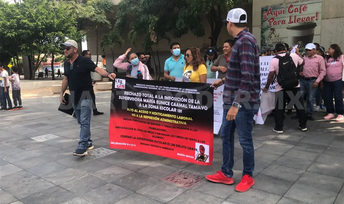 Los manifestantes portaron lonas en las que expresaron su rechazo total a lo que definieron como una imposición de la supervisora Eunice “N”, a la Zona Escolar 131. Además, expresaron que es justo no permitirle regresar porque la supervisora ya ha estado en el encargo, siendo una persona acostumbrada al acoso laboral, así como a la represión administrativa.