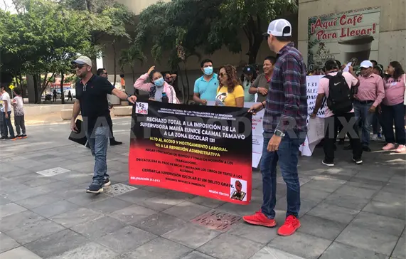 Integrantes del magisterio, en respaldo a madres y padres de familia de Tuxtla Gutiérrez, se manifestaron para exigir que no se permita la reinstalación de la supervisora Eunice “N”, de la Zona Escolar 131.