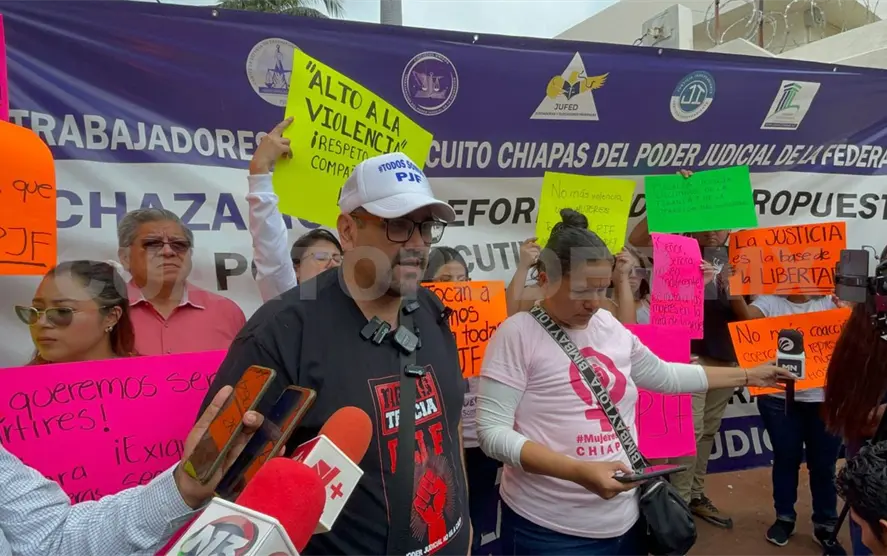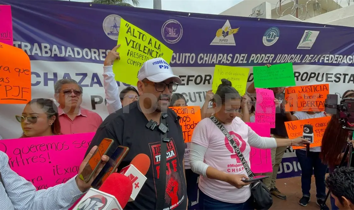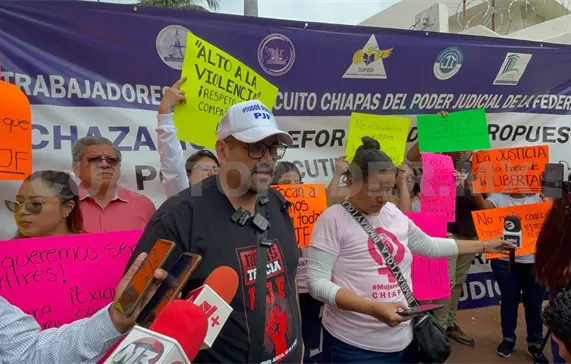 Trabajadores del Poder Judicial de la Federación (PJF) en Chiapas se manifestaron a las puertas de las oficinas del edificio judicial, en contra de la agresión con arma de fuego que sufrieron dos mujeres trabajadoras de la institución por parte de policías ministeriales, ocurrido la mañana de ayer viernes.