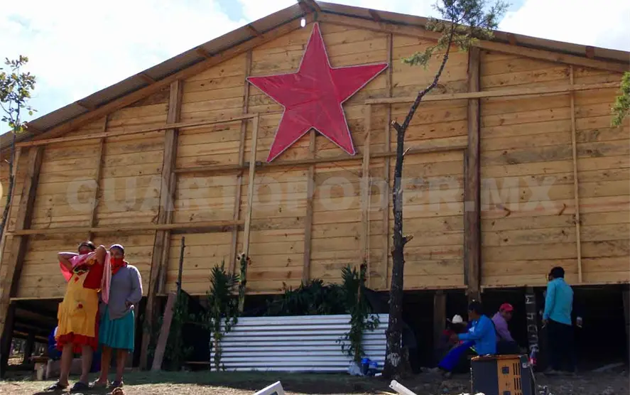 “No a los megaproyectos de López Obrador en contra de nuestra vida, de la vida de nuestra madre tierra, como: No al tren maya, no al transístmico, a la minería, no a las eólicas, no a las autopistas, no a los oleoductos, no a las presas hidroeléctricas, no a los gasoductos”, se lee, según las imágenes, en una manta colocada en el Caracol Jacinto Canek, sede de la Junta de Buen Gobierno Flor de nuestra palabra y luz de nuestros pueblos que refleja para todos, ubicado en San Cristóbal.