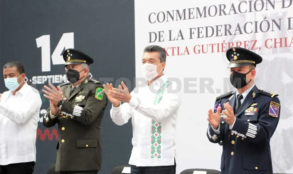 Junto a los comandantes de la VII Región Militar, Jaime González Ávalos; de la XXXI Zona Militar, Gilberto Martínez Martínez; de la Región Aérea del Sureste, Marco Antonio Zaragoza Vázquez; y de la Coordinación Estatal de la Guardia Nacional en Chiapas, Gerónimo José Antonio Noé Valdés López, el mandatario subrayó el trabajo conjunto por la paz, seguridad y progreso de Chiapas, sobre todo con las Fuerzas Armadas.