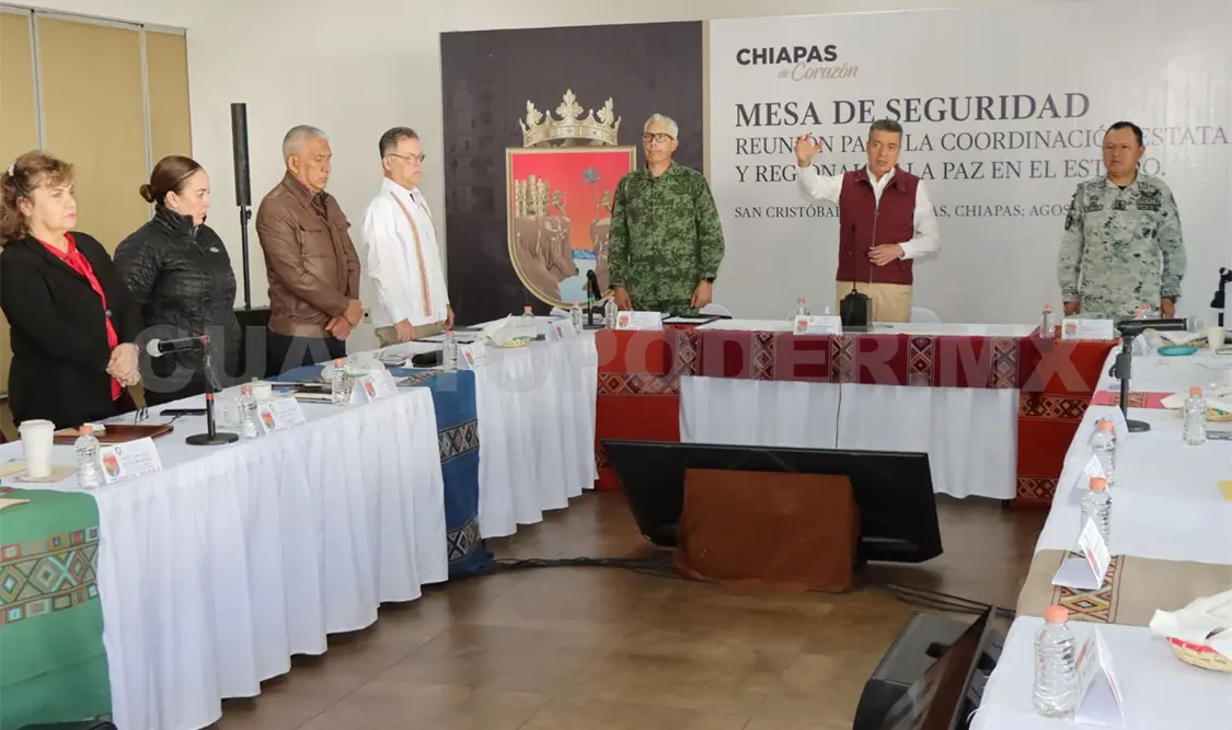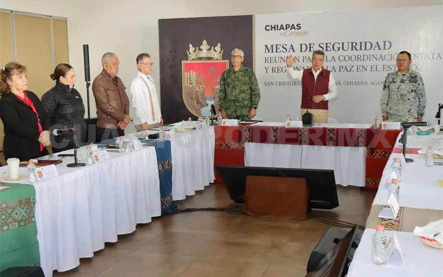 En San Cristóbal de Las Casas, el gobernador Rutilio Escandón Cadenas encabezó la Mesa de Coordinación Estatal para la Construcción de la Paz y la Seguridad, donde informó que, de acuerdo a con el pronóstico meteorológico, van a continuar las lluvias moderadas en Chiapas, sobre todo en los municipios de las regiones Soconusco, Istmo Costa, Sierra, Norte, De Los Bosques, Tulijá Tseltal Chol y Mezcalapa.