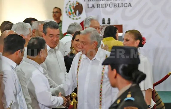 Enfatizó que con base en la política de cero corrupción, se ha logrado invertir en la construcción, rehabilitación y modernización de la infraestructura vial, carretera, portuaria y aeroportuaria, así como obras relacionadas a los rubros de salud, seguridad, educación y apoyo a los sectores productivos. Sin olvidar el impulso de proyectos de desarrollo como el Tren Maya, el Corredor Interoceánico y la reapertura de las vías férreas de la región Sur Sureste del país.