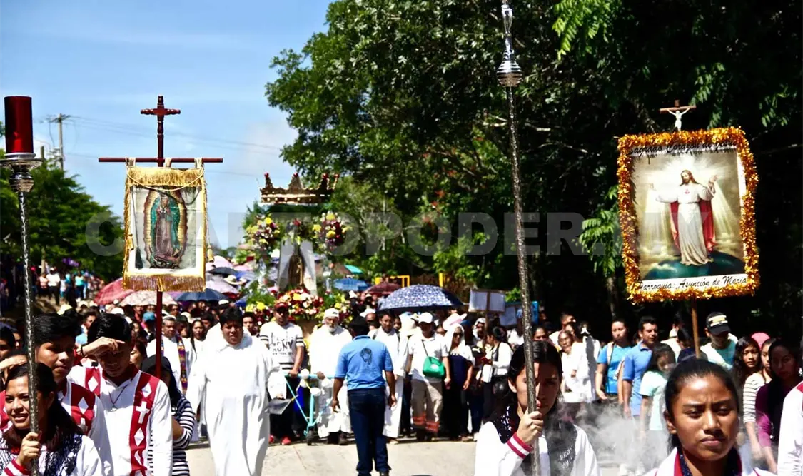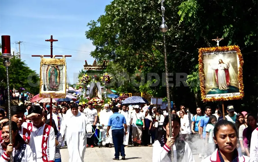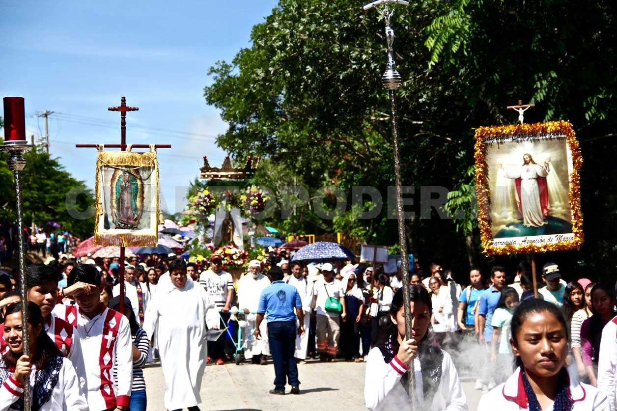 Como cada 10 de agosto, impulsados por la fe, cientos de personas avanzaron entre cánticos y jaculatorias en la carretera Ocozocoautla-Apic-Pac, con destino a la parroquia de Ocuilapa que lleva el mismo nombre de la patrona del pueblo: Asunción.