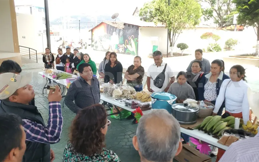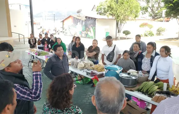 Durante la jornada se realizó una exposición de productos elaborados con maíz como pozol, tamales, atole agrio, pinole y tascalate; además de café, chilacayote en dulce, herbolaria tradicional, lombricomposta y una muestra fotográfica sobre prácticas agroecológicas.