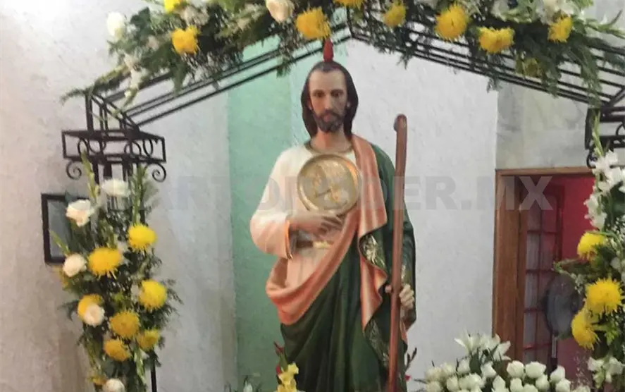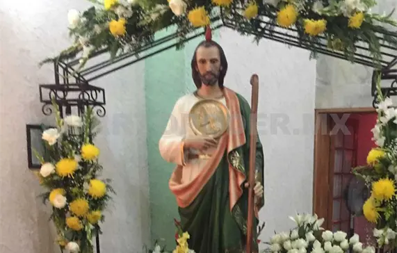 Antes de que iniciara la misa que se celebra como tradición cada año a las 5 de la mañana, ya había una gran concentración de feligreses y mariachis que cantaron las mañanitas. La iglesia, remodelada y agrandada en fechas recientes, no fue suficiente para dar cabida a todas las personas que llegaron con sus arreglos florales y todo tipo de obsequios con la imagen del santo patrono de los casos difíciles, que se dan después de la misa; además de los tradicionales tamales, atole y café que los feligreses donan para un convivio después de la misa.