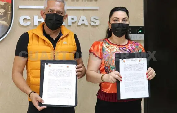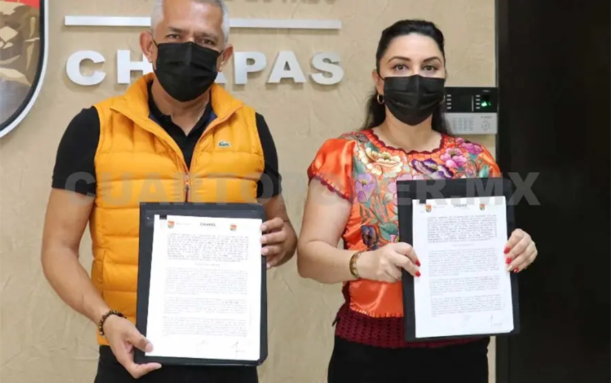 El fiscal general del Estado, Olaf Gómez Hernández, firmó Convenio de Colaboración con la secretaria de Bienestar del Gobierno del Estado de Chiapas, Adriana Grajales Gómez, con el objetivo de impulsar acciones de coordinación institucional para el desarrollo de programas y proyectos conjuntos en beneficio de las personas víctimas de delitos y de poblaciones vulnerables.