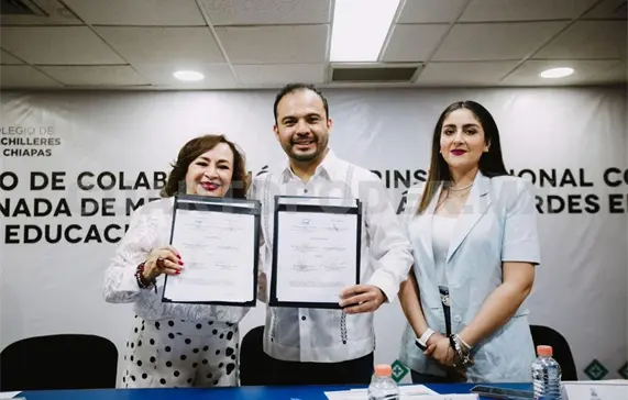 En el Auditorio Luis Donaldo Colosio, de las oficinas centrales del Colegio de Bachilleres de Chiapas (Cobach), se celebró la firma del convenio de colaboración entre la Secretaría de Medio Ambiente e Historia Natural (Semahn) y el Cobach, con el propósito de fortalecer las acciones de vinculación y extensión de la educación ambiental en los 338 centros escolares.