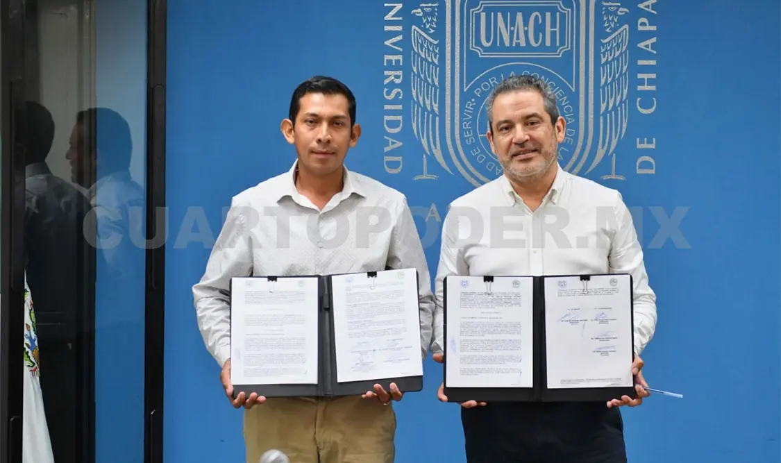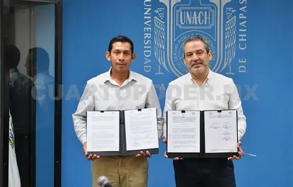 El rector de la Universidad Autónoma de Chiapas, Carlos Faustino Natarén Nandayapa y el presidente de la Asociación Ganadera Local de Tonalá, Carlos Antonio Vázquez Zambrano, firmaron un Convenio General de Colaboración y un Convenio Específico en materia de Servicio Social y Prácticas Profesionales.