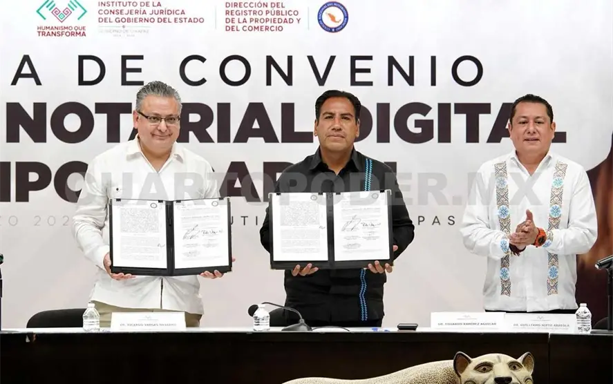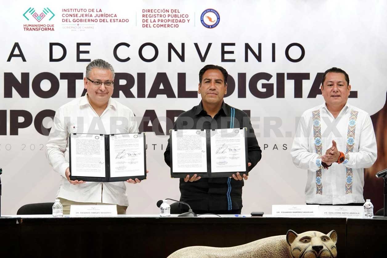 Finalmente, el consejero jurídico del Gobierno del Estado, Guillermo Nieto Arreola, destacó que este convenio marca el inicio de la digitalización del registro público en Chiapas, el cual no solo permitirá recabar los recursos de manera más eficiente, sino que también brindará mayor certeza y legalidad a los actos jurídicos en el estado.