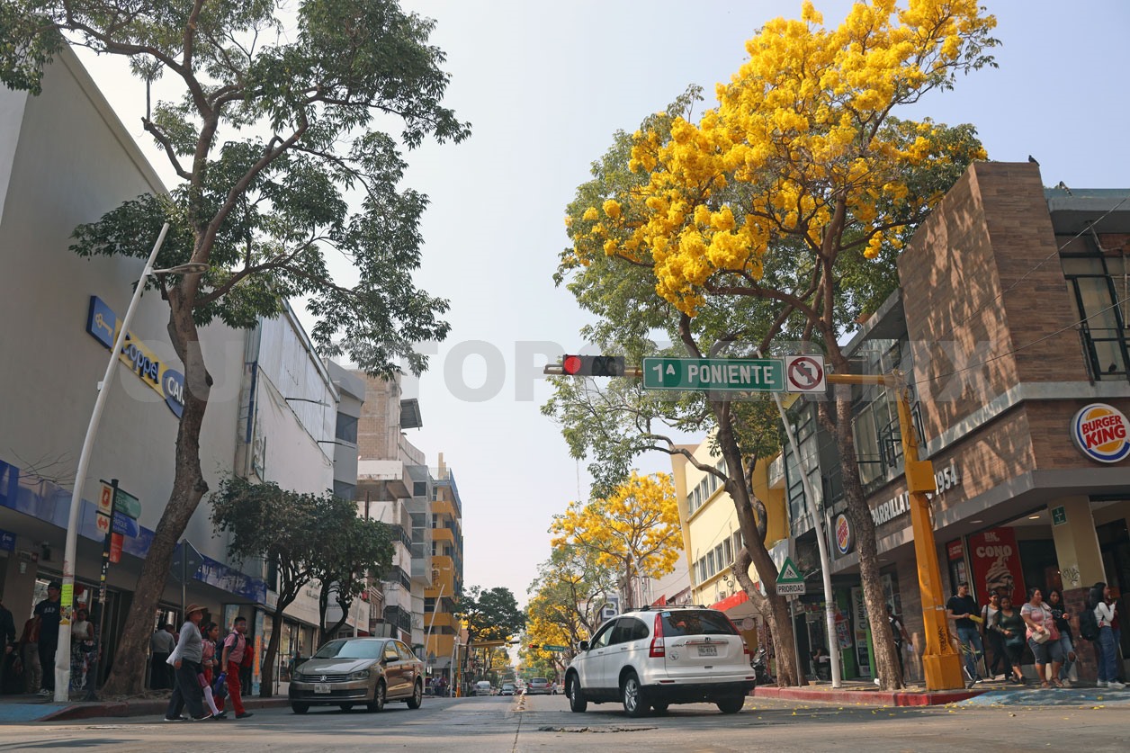 Febrero trajo con sigo el característico manto amarillo que adorna las principales calles y avenidas del centro de Tuxtla Gutiérrez a causa de la floración de los árboles de primavera,