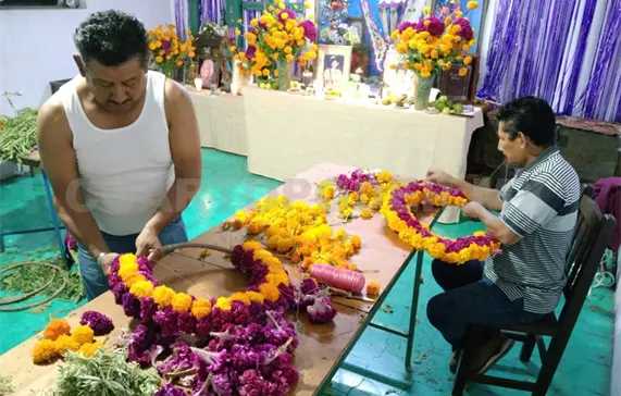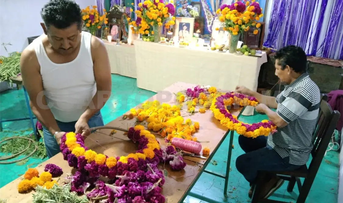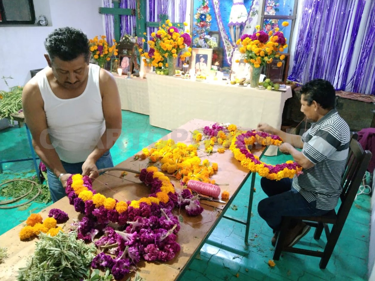 Ni un solo año ha dejado a un lado esta tradición. Siempre se prepara con flor de seda, cempasúchil, flor de lechita y siempre viva, de colores morado, naranja y blanco, propios de la temporada. Hace entre 10 y 12, junto a dos de sus hijos, los mayores.