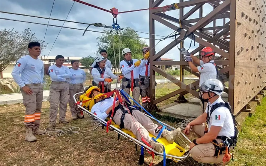 Además, y en el mismo sentido de formar profesionales en materia de Protección Civil, se capacitó a los alumnos que cursan la Licenciatura en Urgencias Médicas Prehospitalarias de la Quinta Generación, la asignatura Técnicas de Rescate por el maestro Mauro Rosel Flores Hernández.