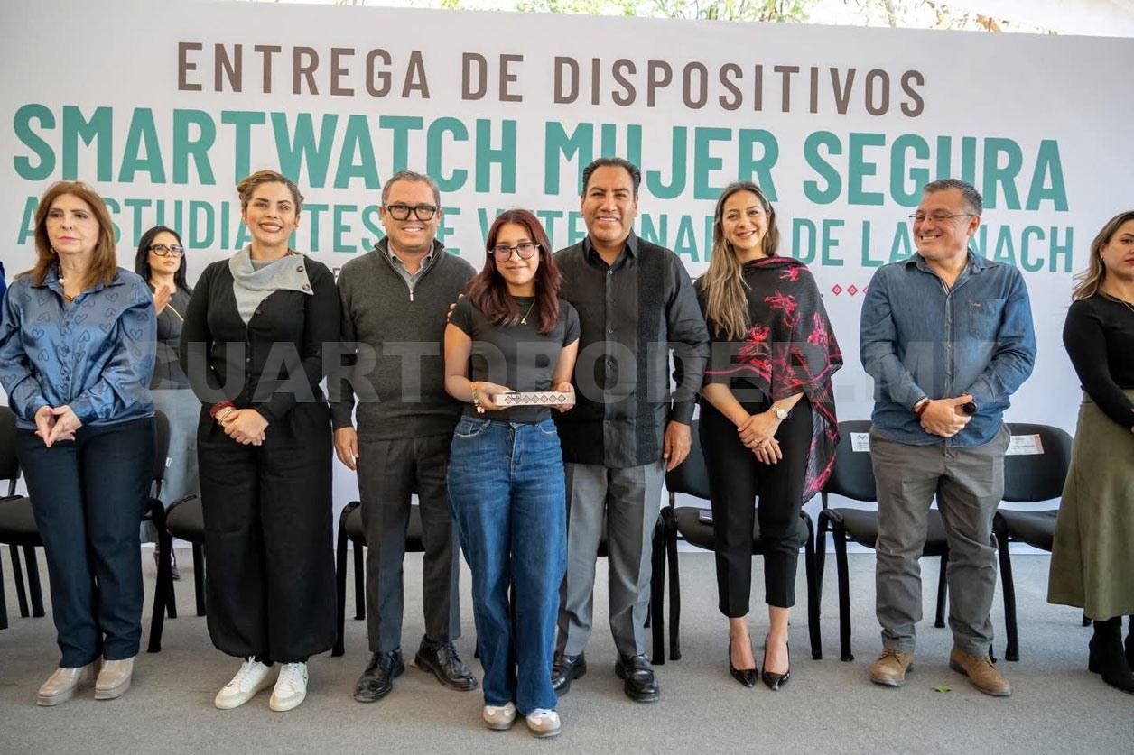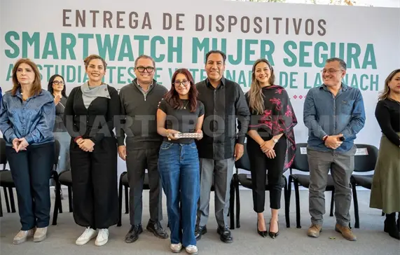 La secretaria de la Mujer e Igualdad de Género (Semuigen), Marian Vázquez González, informó que se entregaron 342 smartwatch a alumnas de esta facultad, con el objetivo de fortalecer su seguridad y garantizar traslados más seguros. Detalló que el dispositivo permite solicitar apoyo inmediato de la Secretaría de Seguridad del Pueblo dentro de un perímetro de un kilómetro. Asimismo, enfatizó que el gobernador ha sido claro al establecer una política de cero tolerancia al hostigamiento, acoso y abuso sexual, por lo que invitó a denunciar cualquier situación a través de la línea 079.