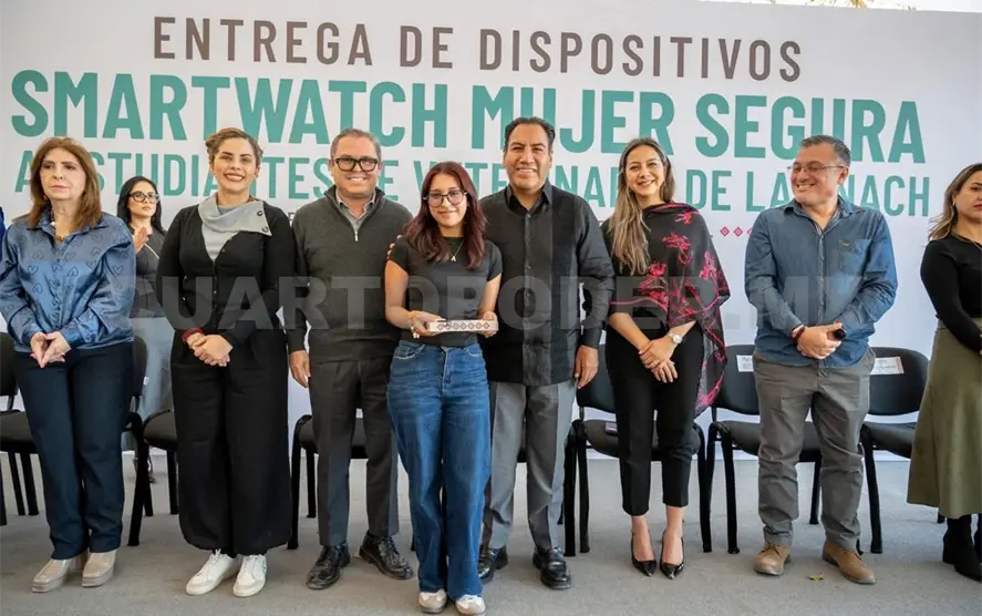 El gobernador Eduardo Ramírez Aguilar encabezó la entrega de dispositivos smartwatch del programa Mujer Segura: Presiona, Activa y Alerta a estudiantes de la Escuela de Medicina Veterinaria y Zootecnia de la Benemérita Universidad Autónoma de Chiapas (Unach), en Tuxtla Gutiérrez. En ese marco, destacó que una de las prioridades del gobierno de la Nueva ERA es garantizar el bienestar, la seguridad, la confianza y el derecho de las mujeres a una vida libre de violencia.