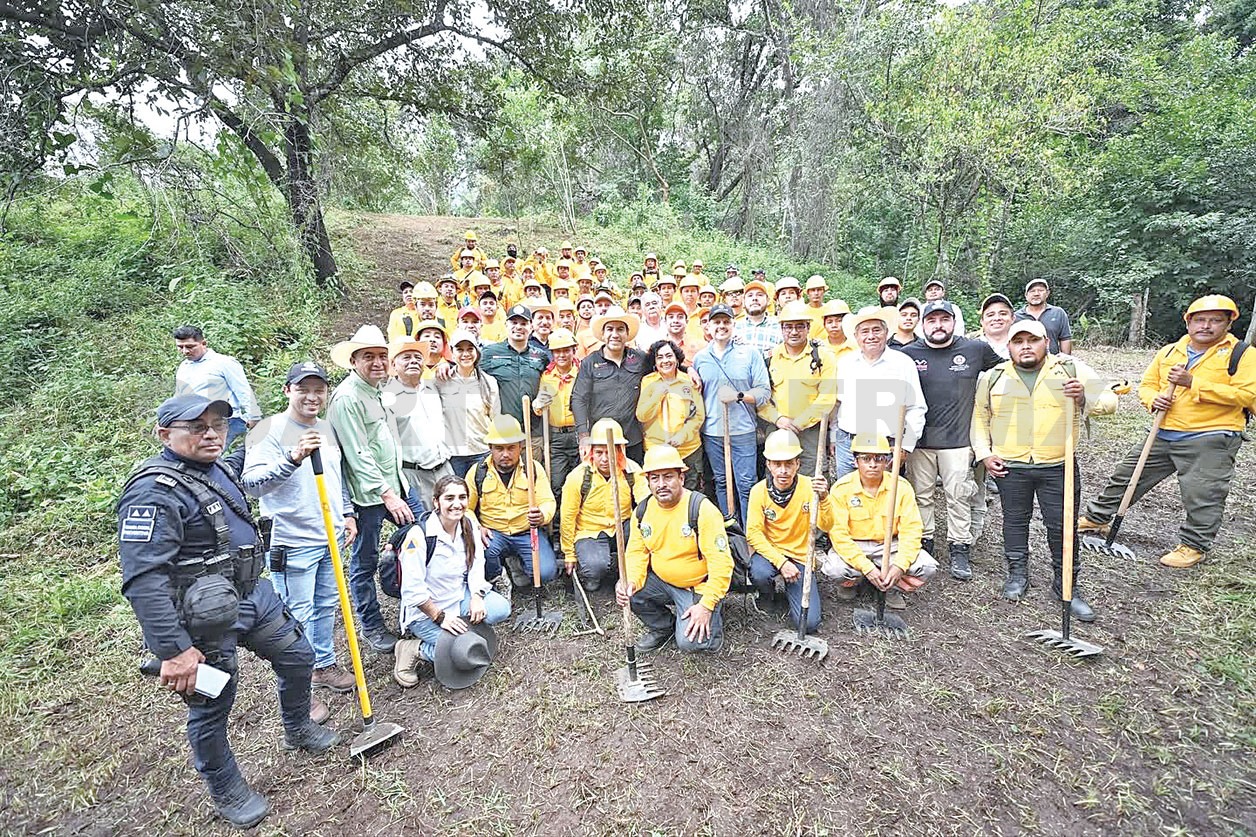 Acompañado por combatientes, personal de Protección Civil, ejidatarios y autoridades federales, estatales y municipales, el mandatario remarcó que esta estrategia preventiva, basada en la coordinación entre pueblo y gobierno, no solo pretende disminuir los daños ocasionados por los siniestros, sino también contribuir al cuidado de la madre tierra.