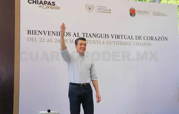Al poner en marcha el Tianguis Virtual de Corazón, el gobernador Rutilio Escandón Cadenas manifestó que ante la emergencia por el Covid-19, Chiapas no baja la guardia y a través de esta estrategia digital busca fortalecer la economía y contribuir en la sana alimentación de la población al consumir productos orgánicos y limpios.