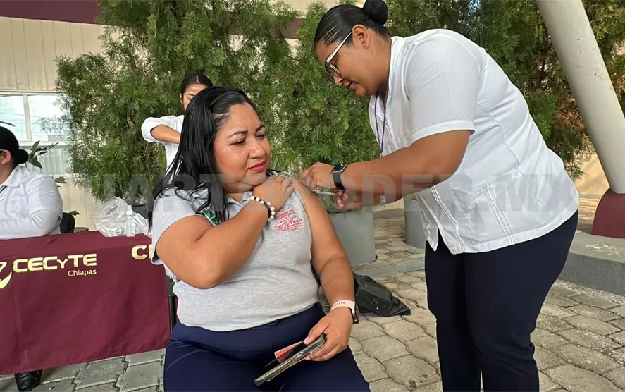 Con el propósito de fortalecer el bienestar de su base trabajadora, el Colegio de Estudios Científicos y Tecnológicos del Estado de Chiapas (Cecytech) llevó a cabo una Jornada de Vacunación en coordinación con la Secretaría de Salud (SSA), como parte de las acciones orientadas al cuidado integral del personal que diariamente contribuye a la formación académica en la entidad.
