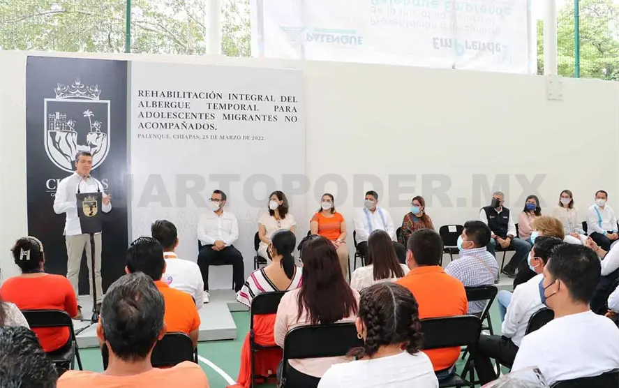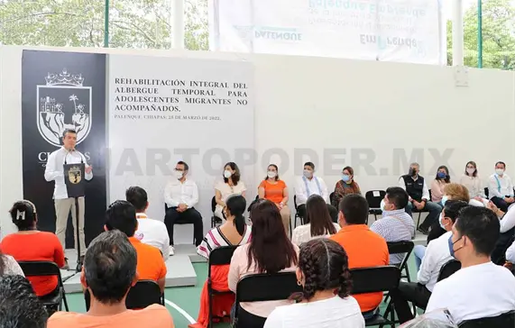 En el municipio de Palenque se realizó el fortalecimiento y la rehabilitación integral del Albergue Temporal para Adolescentes Migrantes No Acompañados, que tiene como objetivo brindar alojamiento y asistencia social, así como eficientar la atención y el cuidado de jóvenes en contexto de migración, mediante espacios dignos, limpios y funcionales.