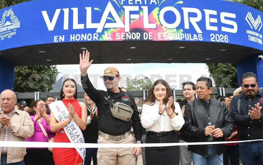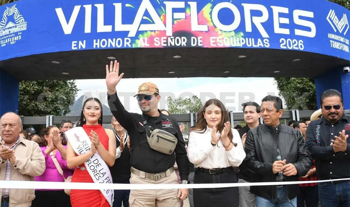 En representación del gobernador Eduardo Ramírez Aguilar, el secretario de Seguridad del Pueblo, Óscar Alberto Aparicio Avendaño, encabezó el corte de listón e inauguración de la Feria de Villaflores 2026 en honor al Señor de Esquipulas.