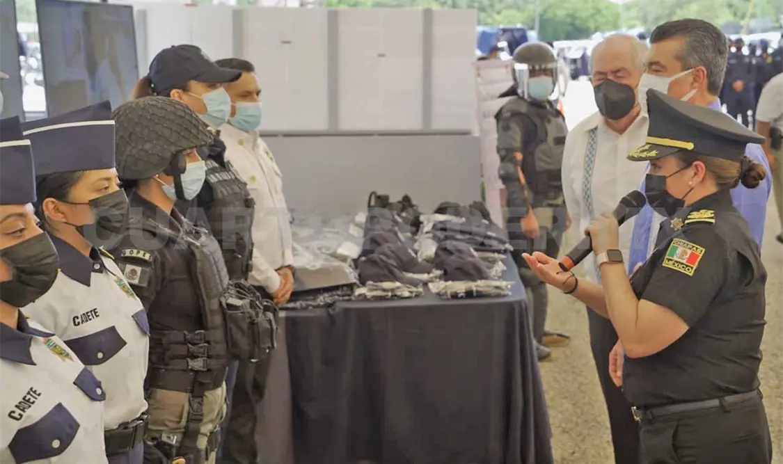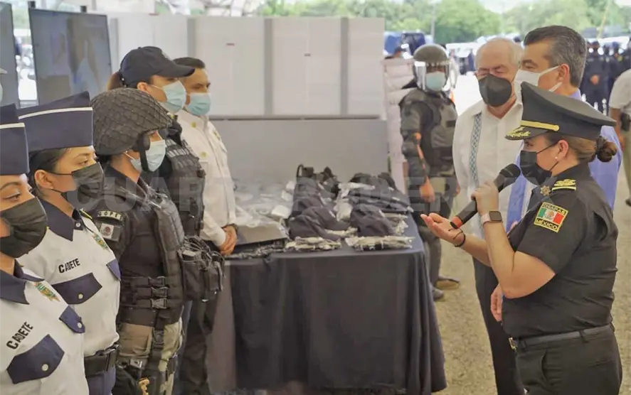 Zepeda Soto expresó que a través de los fondos federales y estatales se ha impulsado la entrega de equipamiento, uniformes y unidades vehiculares, así como mejores condiciones laborales para las y los policías, lo que ha permitido disminuir la incidencia delictiva en Chiapas.