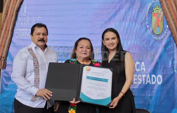Cabe destacar que por esta acción a favor de la identidad gastronómica, la Canirac-Chiapas y Canirac-México, de manos de su presidente local, Guillermo Acero Bustamente, le entregó un reconocimiento a la legisladora chiapaneca por su lucha y esfuerzo a favor de la gastronomía de los pueblos y comunidades de Chiapas.