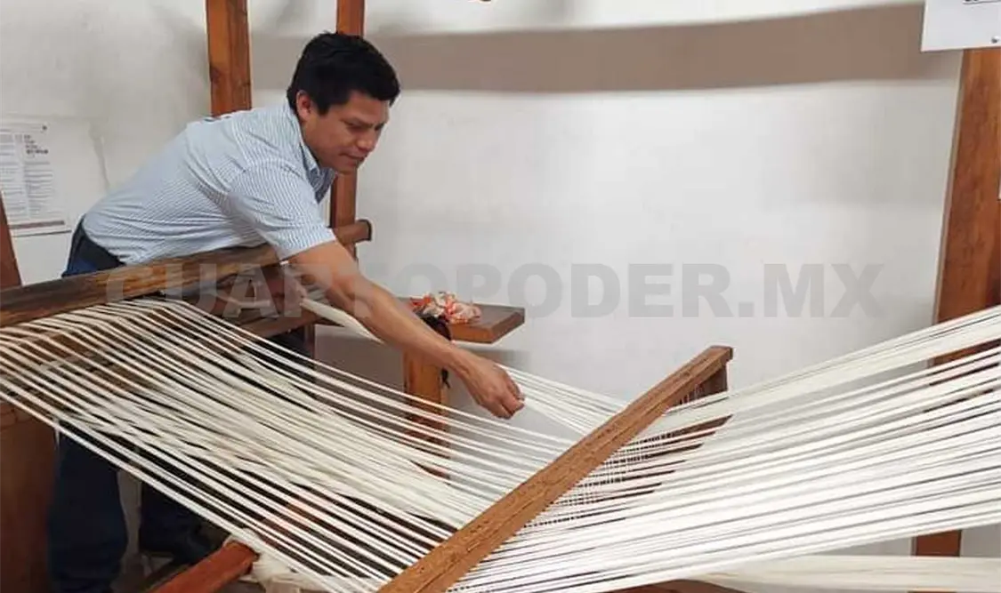 Gilberto Núñez Cruz desde hace más de 12 años imparte el Taller de tejido en telar de pedal y teñido con tintes naturales, en el Centro Cultural El Carmen de esta ciudad.