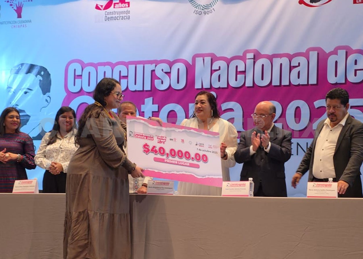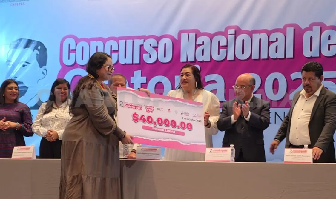 La representante del estado de Oaxaca, Giselle Gamboa Ávila, se proclamó campeona del Concurso Nacional de Oratoria 2025 Dr. Belisario Domínguez Palencia que se efectuó en la ciudad de Comitán.